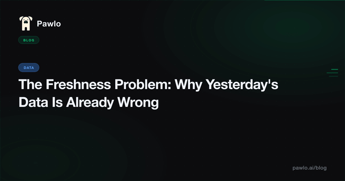 Freshness isn't a nice-to-have feature in business data. It's the difference between a recommendation that creates value and a recommendation that destroys trust. The data layer that solves freshness — that gives agents information measured in minutes, not months — is the one agents will rely on. Everything else is yesterday's news, and in the agent economy, yesterday's news is already wrong.