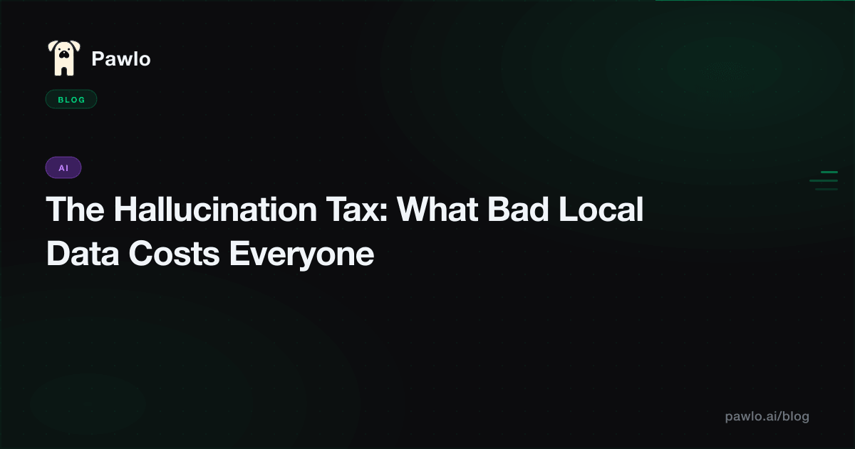 The ecosystem pays in slower adoption. The aggregate effect of millions of hallucination tax events is that AI-mediated local commerce grows slower than it should. Consumers who've been burned are skeptical. Businesses that have fielded angry calls from misinformed AI-referrals are hostile to the channel. Agent builders struggle with retention because their recommendations aren't trustworthy. Everyone would benefit from better AI-mediated commerce, but stale data is poisoning the well.