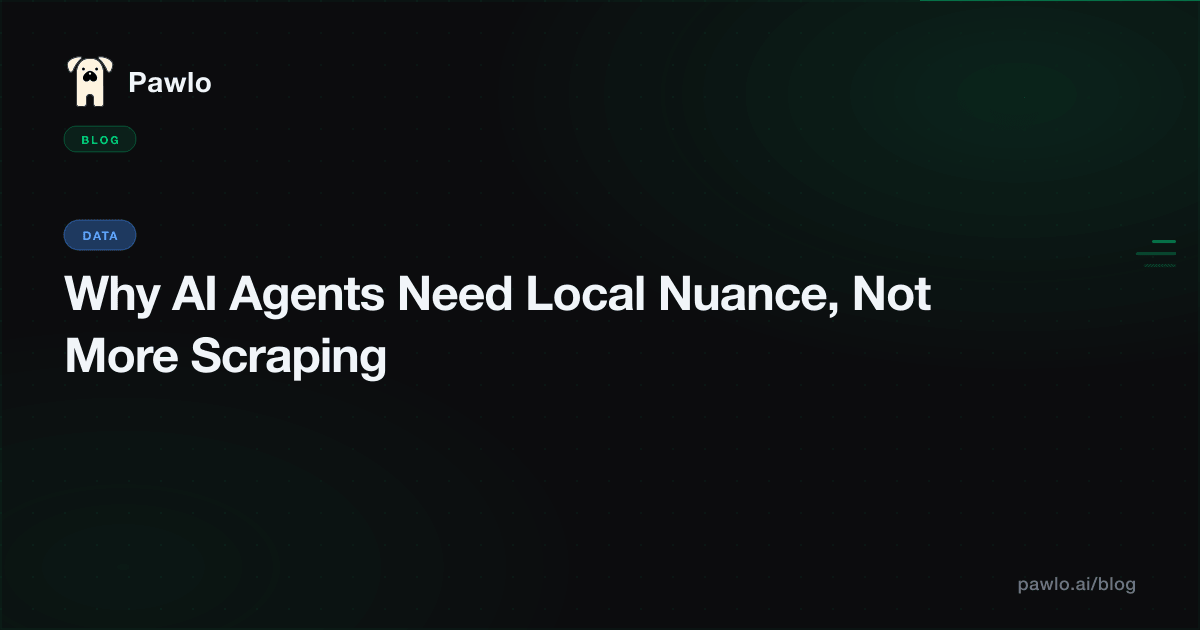 At Pawlo, we go directly to businesses and collect what we call nuance — the structured intelligence that lives inside a business and differentiates it from every competitor. We turn natural language descriptions into structured, queryable data that any AI agent can fetch in milliseconds.